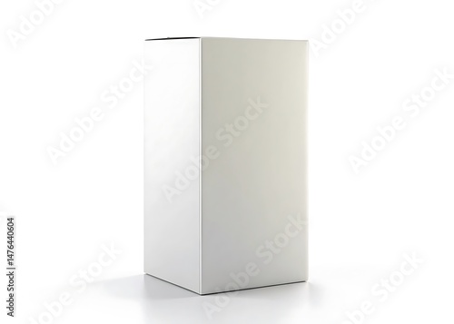 Blank white tall cardboard box isolated on white background