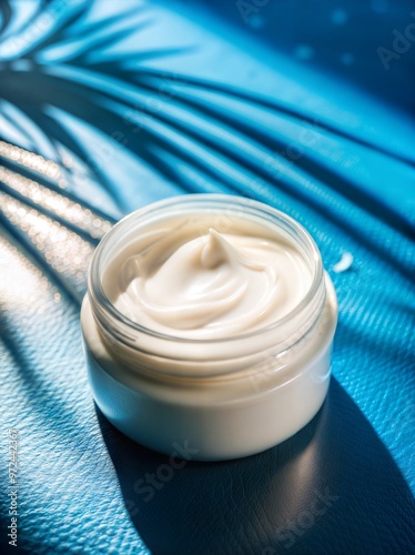 Blank white tube hand cream sun scream mock up blue flower background lay flat