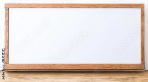 Blank whiteboard with wooden frame on wood surface.