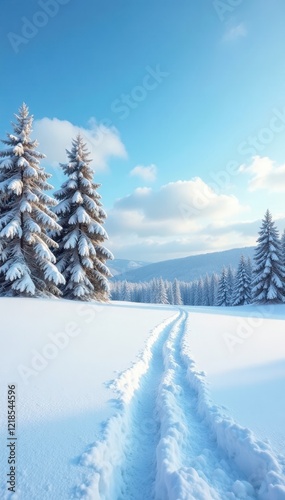 Blank winter scene, expansive snowy field, copy space available, illustration, pure