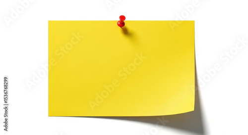 Blank Yellow Sticky Note Pinned with Red Thumbtack on a Clean White Background with Shadow
