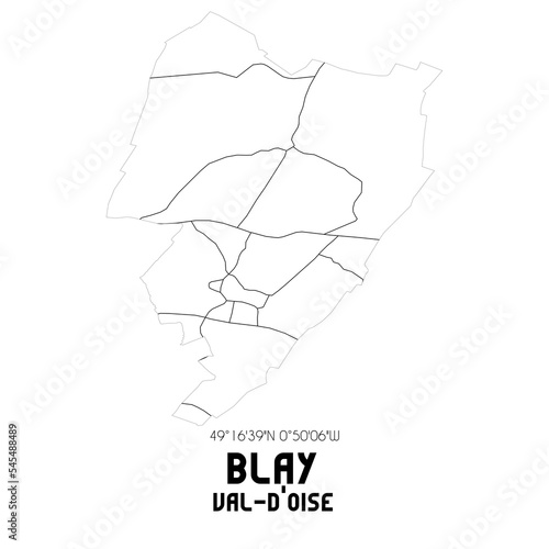 BLAY Val-d'Oise. Minimalistic street map with black and white lines.