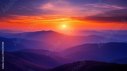 Blazing sunset over jagged mountains nature landscape vivid skies at dusk peaceful environment scenic viewpoint