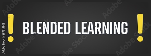 Blended Learning. A blackboard with white text. Illustration with grunge text style.