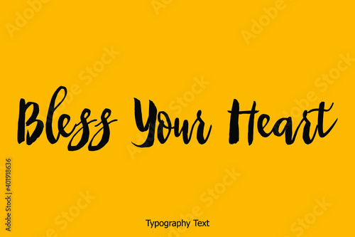 Bless Your Heart Handwritten Bold Calligraphy Text on Yellow Background
