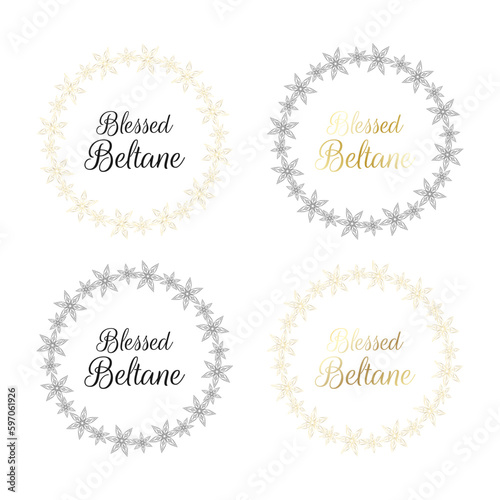 Blessed Beltane inscription in esoteric circle, round frame. Vector illustration