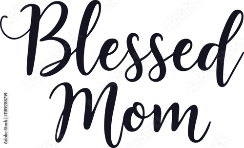 Blessed Mom Text Vector - Elegant Typography Design
