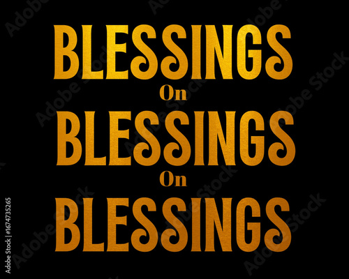 Blessings on Blessings, Inspirational Phrase in Gold Font on Dark Background