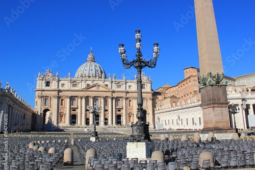 Blick über den Petersplatz im Vatikan mit Petersdom und Obelisk (Rom)