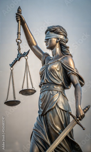 Blind justice symbol represented by a metallic statue. Law and justice concept. (Law)
