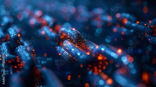 Block chain concept - Chain of network connections . 3d rendering