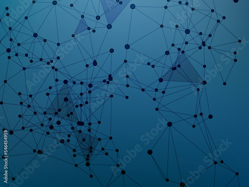 Block chain global network technology concept. Network nodes plexus dark blue background.