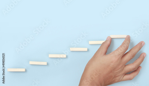 Block stacking as step stair in hand. Business concept