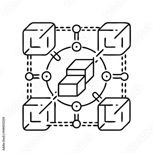 blockchain technology icon, blockchain technology line art - simple line art of blockchain technology, perfect for blockchain technology logos and icons