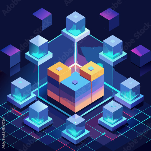 blockchain-concept-with-glowing-cubes-connected-in