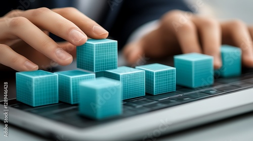 Blocks building on a laptop keyboard, technology use