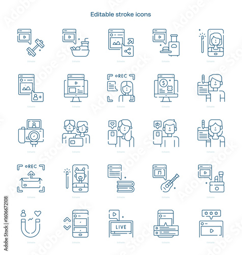 Blogger stroke icon. Blogger line icon set. editable stroke icon pack