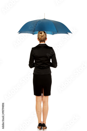 Blonde businesswoman holding an umbrella