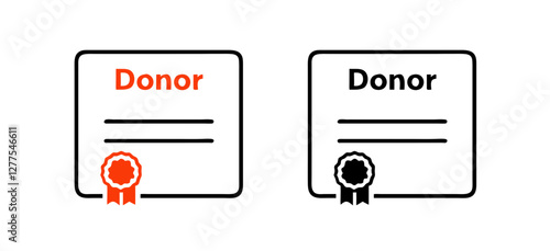 Blood, plasma or organ donor certificate icon with a ribbon, red and black designs