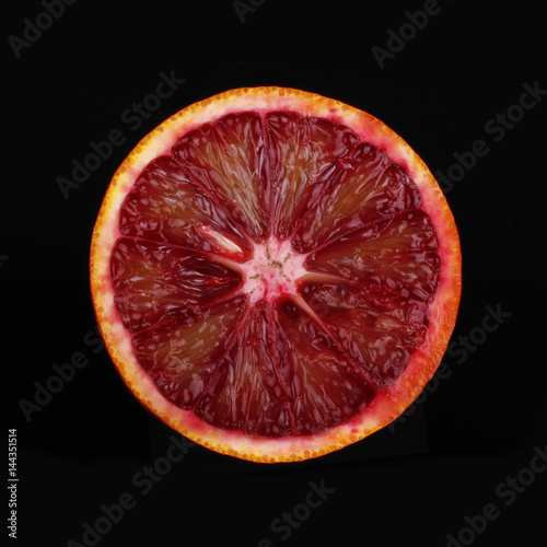 blood red orange slice isolated on black background