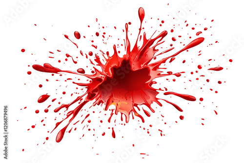 Blood splatter in the shape of an explosion, with droplets extending outward, isolated on a white background