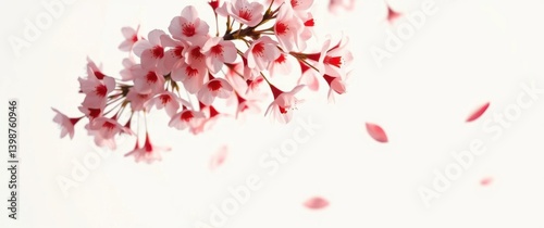 Blooming cherry blossoms herald spring with soft pink petals against a pristine white background.