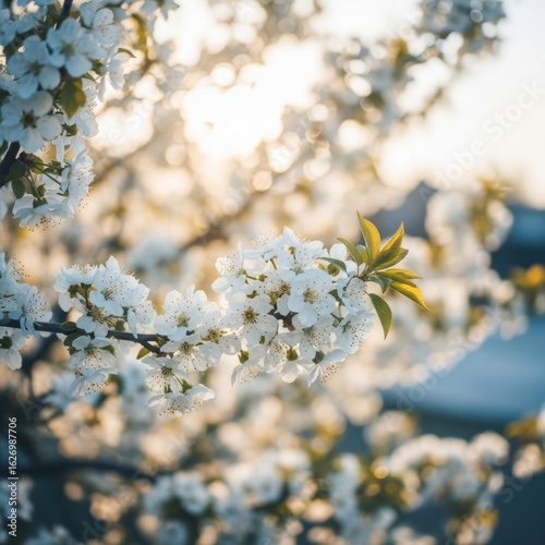 Blooming Cherry Branches Bathed in Sunlight