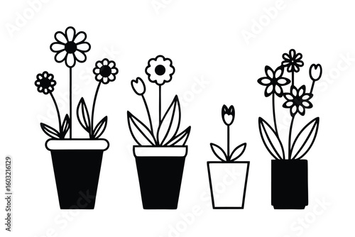 Blooming Flowers In Assorted Cute Plant Pots