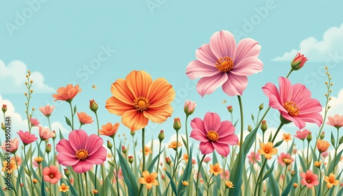 Blooming in the Wind Flowers gently swaying in the wind, illustrated with soft lines and vibrant colors capturing the essence of movement.