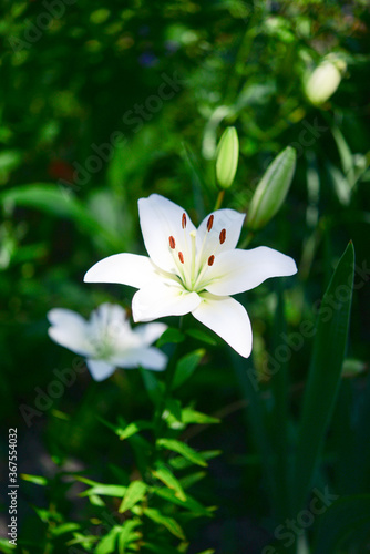 Blooming lily on a green background