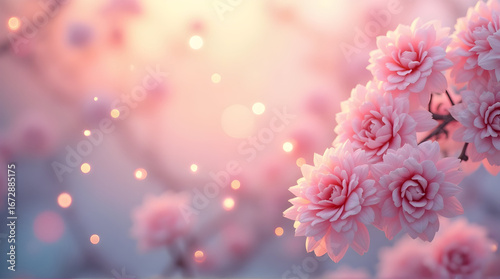 Blooming Pink Flowers with Bokeh Light Soft Spring Background
