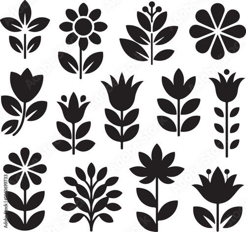 Blooming Spring Floral Silhouette Wildflower Field in Spring Vector Elegant Spring Bouquet Design Minimalist Spring Flower Line Art Cherry Blossom Breeze Silhouette
