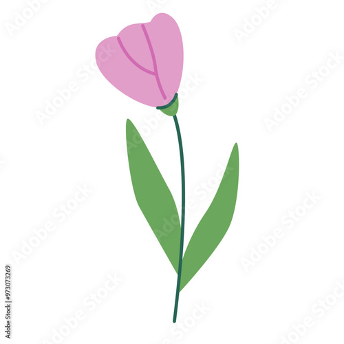 Blooming spring flower bud. Delicate gentle field floral plant, herb. Abstract meadow blossomed wildflower, stem.