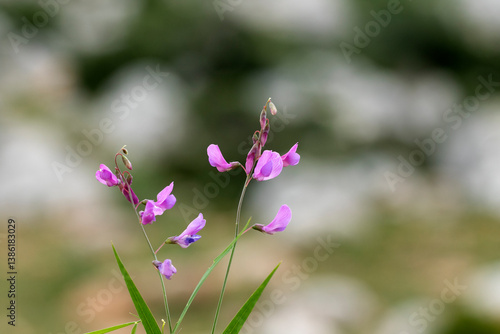 Blooming Thread-like Vetchling or Thread-like Pea (Lathyrus filiformis), a fascinating species with a delicate appearance in spring.