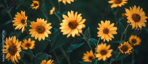 Blooming Yellow Sunflowers in Summer Garden Beautiful Nature Photography