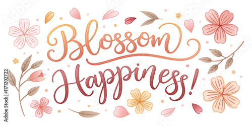 Blossom into happiness with whimsical floral script design for posters or cards.