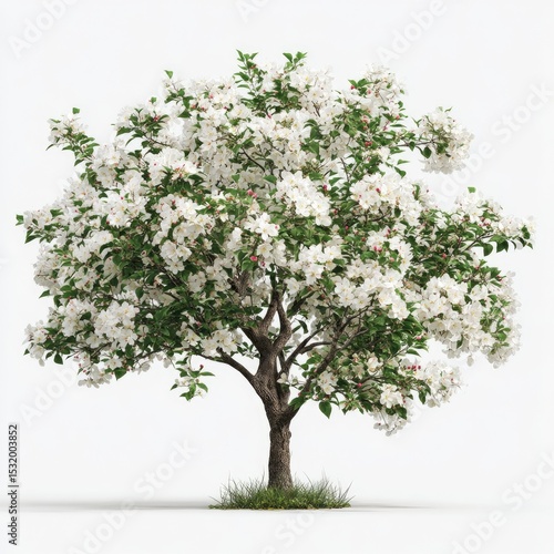 Blossoming apple tree against white background