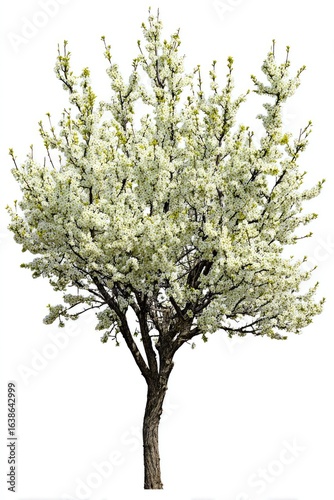 Blossoming spring tree against white