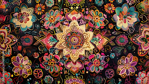 Blossoming Symmetry: Colourful Floral Mandala with Black Outline