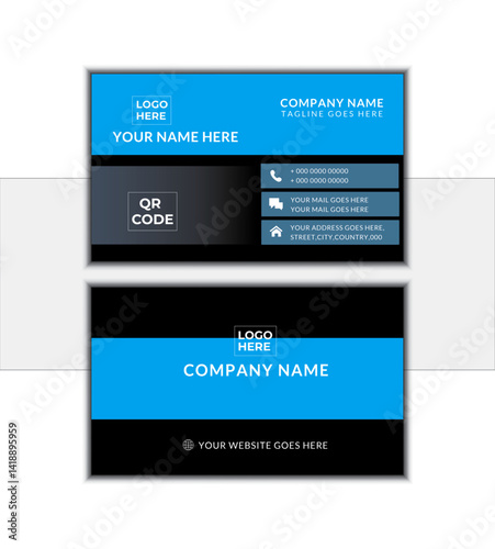 Blue & black color, modern creative business card,horizontal simple clean template vector design, rectangle size.