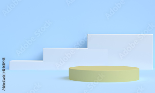 Blue Minimal style 3D Render Mockup Background, Blank shelf stand for showing product.