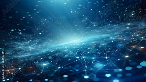Blue abstract background with network grid and particles