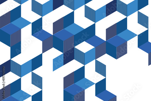 Blue Abstract Cubes Shapes Isometric Pattern Design Background