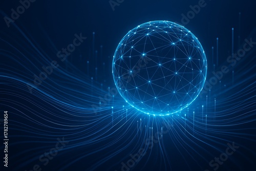 Blue abstract lines and spheres visualizing big data analytics and cloud computing network