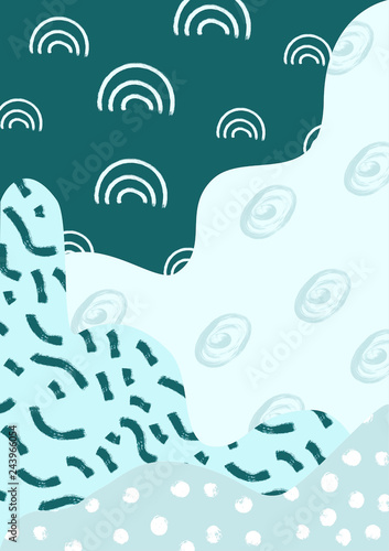 Blue abstract modern and stylish digital background with different shapes. Memphis colorful pattern. Creative forms.