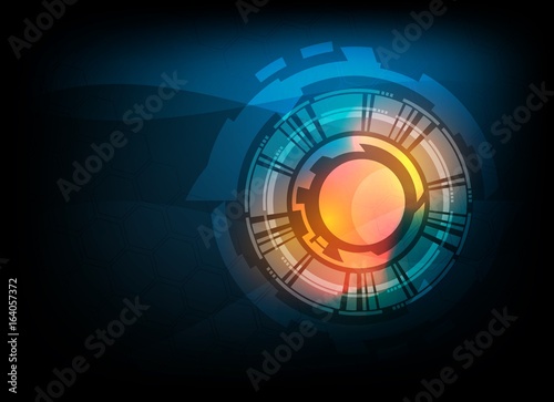 Blue abstract tech circles background design with light effect