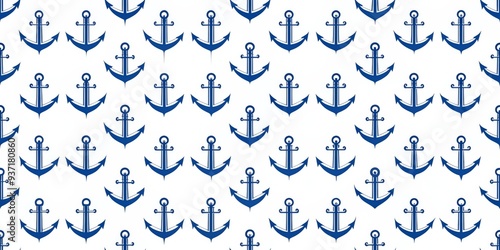 Blue Anchor Seamless Pattern, White Background, Repeating Pattern, Nautical Design, Anchor Illustration, Ocean Theme, Sea Symbol