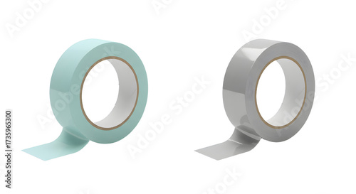 Blue and gray adhesive tape rolls isolated on white background, perfect for packaging and craft projects