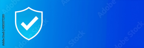 Blue and green shield with a white tick. Symbol of security, agreement. For layout design. Generative AI
