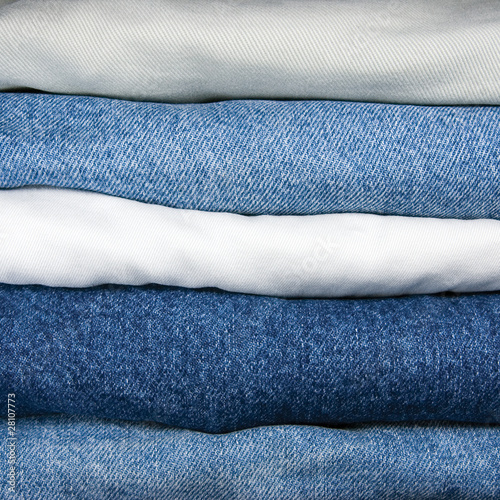 Blue And Khaki Jeans Stack, Texture Closeup